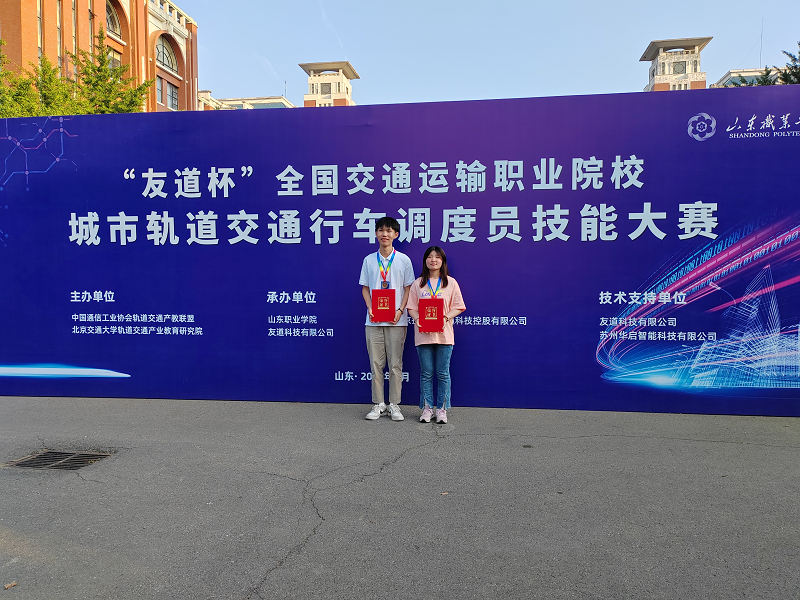 6月12日,“友道杯”全国交通运输职业学院城市轨道交通行车调度员技能大赛全国总决赛于山东职业学院圆满闭幕。pp电子交通运营管理专业学生黄超、徐彩怡组成的代表队荣获国家级三等奖。