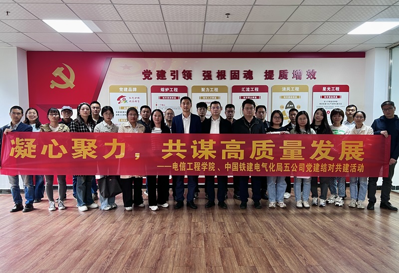 为深入贯彻落实党的二十大及二十届三中全会精神,进一步推动“优势互补、党员互动、活动互联、资源共享”的党建互联共建模式走深走实,推进党建与业务深度融合。10月28日,电信工程学院党总支副书记刘奇带领学院党员教师赴中铁建五公司开展党建结对共建活动,公司项目经理卢云、项目书记罗敏接待了刘奇一行。