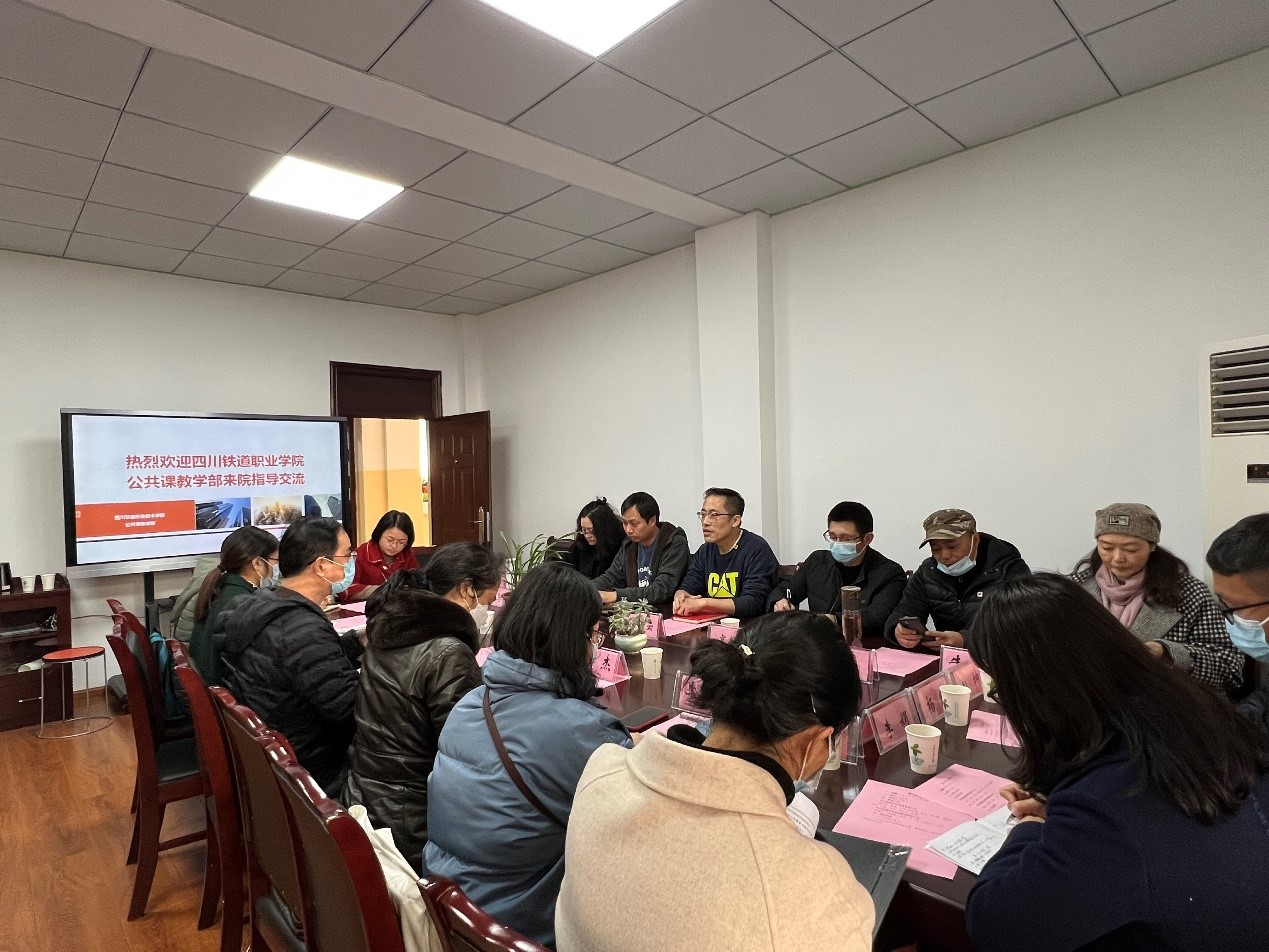 为深入贯彻落实省委、省政府领导指示精神,认真落实全省高校“对标竞进、争创一流”活动要求,进一步提高人才培养质量,促进通识教育类课程教研教改,12月2日下午,公共教学部杨伦军副主任带领公教部各教研室主任及代表教师一行12人赴四川交通职业技术学院调研交流。四川交通职业技术学院公共课教学部主任黄蜀云、副主任高敏静及各教研室主任等热情接待并陪同调研。