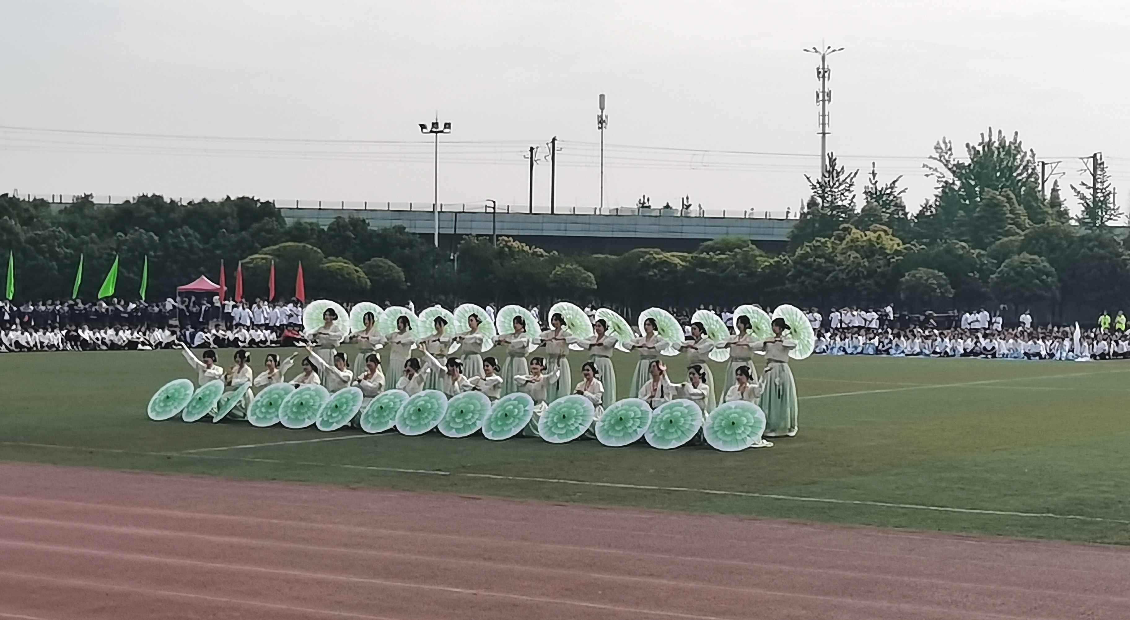 随后,武术表演拉开了团体操展演的序幕。太极拳、长拳表演赢得了师生们的阵阵掌声。各学院也带来了丰富多样的表演,啦啦操、古典舞、现代舞、棍术、擒拿术,在充满活力的音乐声中,同学们灵动的身姿正是多彩飞扬的青春写照。