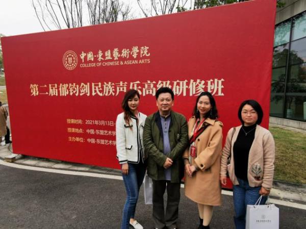 中国-东盟艺术学院院长郁钧剑和pp电子公共教学部艺术教研室王璐、廖小凤、王思巧三位老师留念合影 至3月24日,为期11天的研修班圆满落幕。通过此次高研班的学习,老师们受益匪浅,珍惜宝贵的学习平台,掌握了演唱的新方法,理解了艺术的新理念,将理论与实践相结合,提升了业务水平,增强了文化自信。老师们将在教育教学工作中,努力为学校的艺术教育等事业而努力奋斗,从而更好地奉献社会。