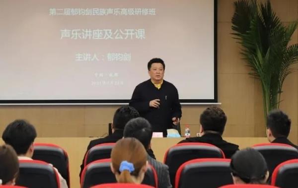 中国-东盟艺术学院院长郁钧剑发言 研修期间,导师们在课堂上循循善诱、旁征博引,台上台下的交流互动,演绎了一场音乐艺术盛宴,一次次技与艺、人文与思想的绝妙碰撞呈现在艺术殿堂。导师们从音色处理到表情演绎,从咬字吐字到气息调整,从艺术的感性到理性,从艺术审美到情感共鸣,把民族声乐理论和演唱技巧传授给学员,将民族声乐艺术精华无私奉献出来。老师们感触很深,收获颇多,对民族声乐唱法有了全新的认识,并学到了许多新技巧和新观念,并将学习实践运动到教育教学中,让民族声乐教育体现美育功能,散发独特魅力,增强学生文化自信。