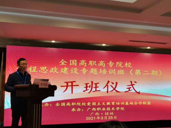 培训于2021年3月25日在广西职业技术学院举行,培训主要就高职院校推进课程思政建设的典型经验做法,新形势下推动课程思政建设新进展新成效,课程思政建设的目标任务、基本内涵、方法路径、建设要求等方面进行了深入的探讨和交流。