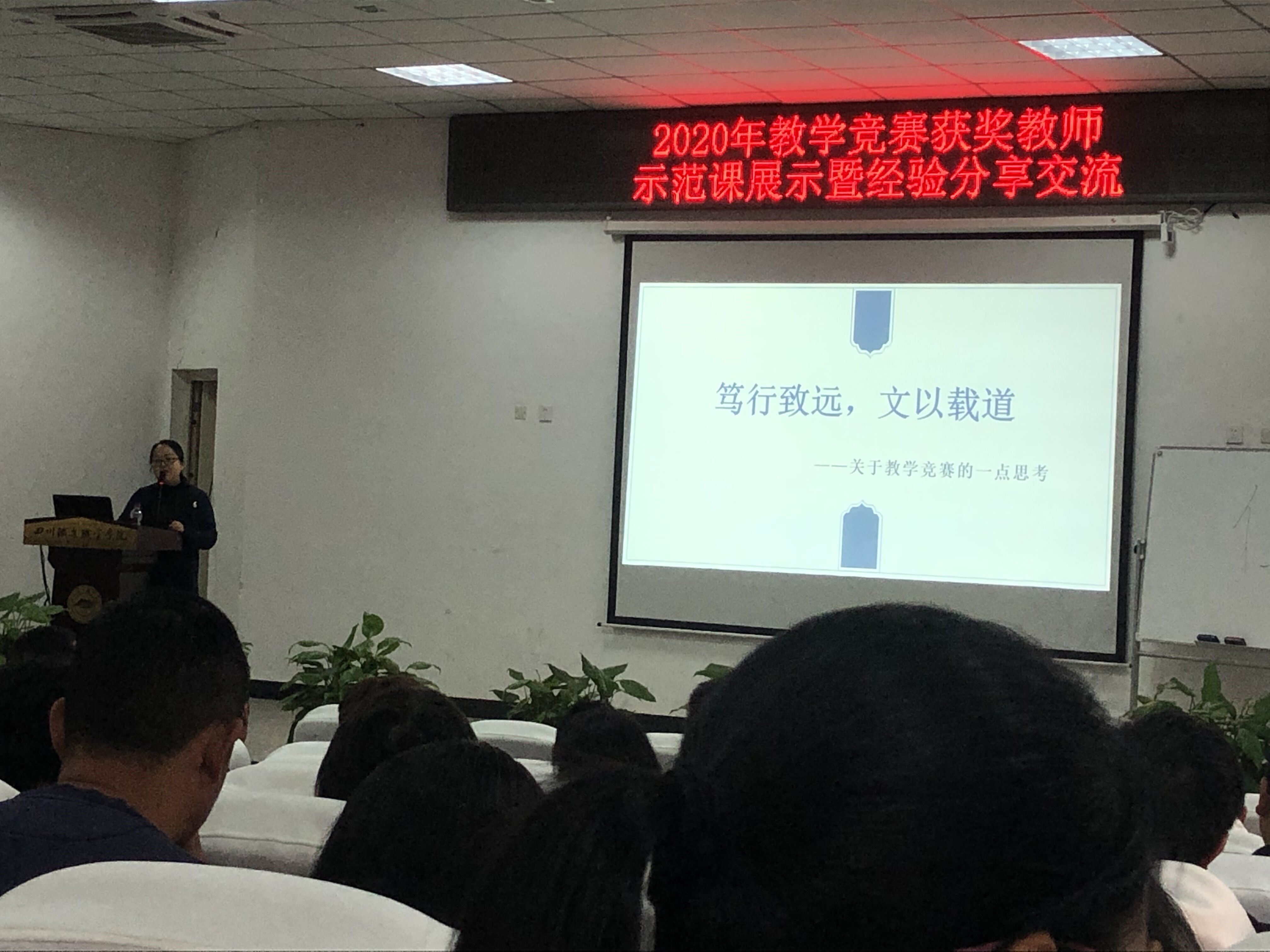 为全面贯彻习近平总书记关于教育的重要论述精神,加强新时代高校教师队伍建设改革,深入落实《关于全面深化新时代教师队伍建设改革的意见》和我院相关文件要求,我院于2021年4月12日下午14:00点在学术报告厅举行2020年省级教学竞赛获奖教师示范课展示暨经验分享交流活动。在公共教学部主任颜静的指导下,公共教学部语文教研室张佳文老师参加了示范课展示,进行经验分享。部门全体教师认真学习优秀教师(团队)的宝贵经验。 本次交流会由公共教学部语文教研室张佳文老师、交通工程系刘春兰老师、交通工程系付婷婷老师、机车系杨凤老师分别带领的教学团队作经验交流。 公教部张佳文老师展示现场授课,分享参赛经验。讲授《国学·论仁》时,将“郭巨埋儿”“楢山节考”两个故事作为前置学习于课前通过二维码方式推送给学生,激发学生兴趣,调动学生积极思考讨论。以“何谓仁”“仁之方”“仁之悟”的思路解读圣人孔子关于“仁”的思想,以辩证的视角探讨如何实现“仁”,理解“人能弘道,非道弘人”的真谛。品读儒家经典,引入历史故事,结合时事政治,阐发青年志向,潜移默化,“润物细无声”地引领大家进入具有浓厚传统文化气息的国学课堂。一次课堂盛宴,延伸无限思考。张老师作《笃行致远,文以载道——关于教学竞赛的一点思考》时,认为一堂好课应该具有“麻雀虽小,五脏俱全”“人无我有,人有我优”“引领示范,展现理想”的特点;在谈到如何打造一节好课时,张老师认为应该有“四一原则”,即“导入——发现一个疑点、重点——确定一个焦点、难点——解决一个难点、评价——绵延一个远点”;坚持“三有原则”,即“有意、有趣、有情”。张老师引雅思贝尔斯之语来结束,即“教育的本质就是一棵树摇动另一棵树,一朵云推动另一朵云,一个灵魂唤醒另一个灵魂。”