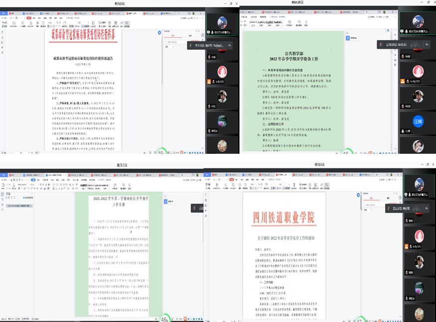 根据《成都市新型冠状病毒肺炎疫情防控指挥部通告(2022年第1号)》《pp电子游戏官网关于做好近期疫情防控工作的紧急通知》等文件,2022年2月21日晚上,公教部副主任杨伦军组织部门教师在腾讯会议召开了部门会议,传达学校疫情常态化防控工作要求,部署2022年春季学期开学工作。公教部全体老师参与了本次会议。