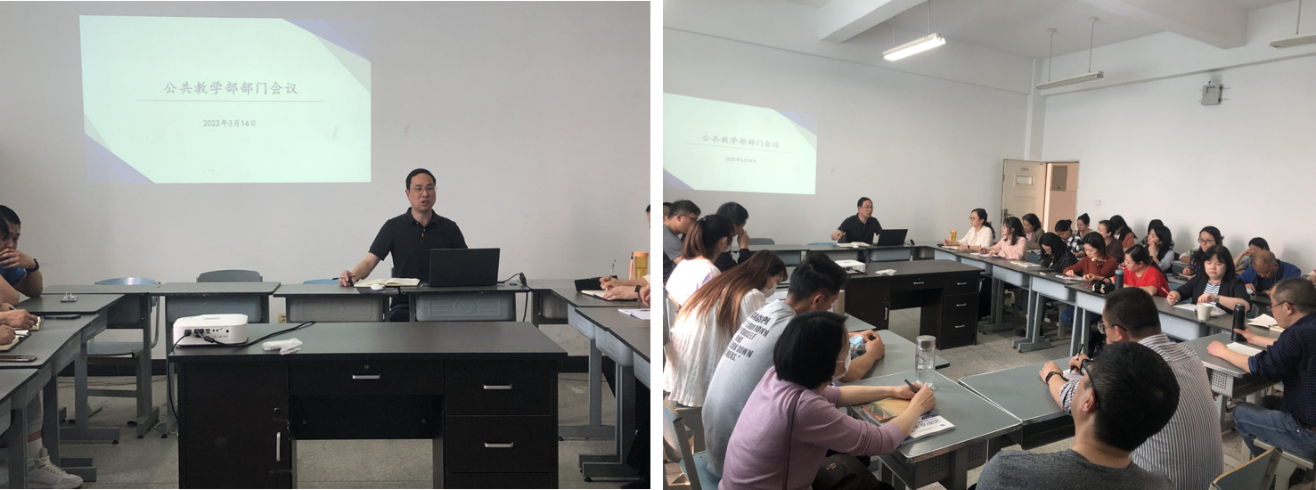 2022年3月14日下午,公教部副主任杨伦军组织部门教师集中学习了学校第二届教职工代表暨工会会员代表大会第一次会议精神,强调常态化疫情防控工作和2022年青教赛工作。公教部全体老师参与了本次会议。