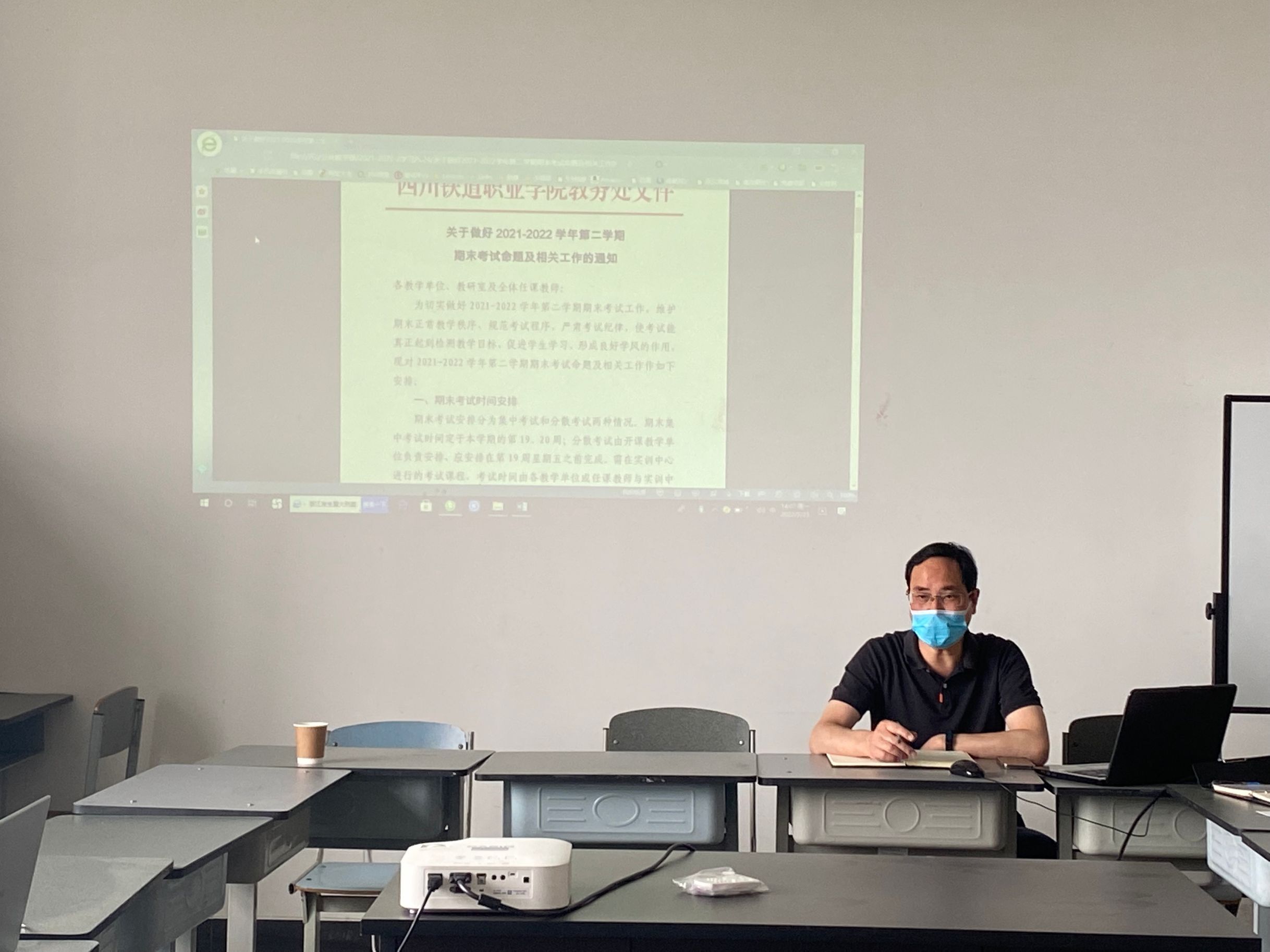 会议要求,一是按照学校《关于做好 2021-2022 学年第二学期期末考试命题及相关工作的通知》,明确考试时间安排、考试组织、考试方式、考试命题、保密工作等相关要求,认真做好期末考试工作。二是查看《关于组织全校师生参加迎70周年校庆活动暨“享运动,正青春”线上云健步走比赛的通知》,在保证疫情防控安全的前提下,积极参加本次“迎校庆,享运动,正青春”线上云健步走比赛和工会健步走活动,提高身体素质,激发参与锻炼的积极性,实现分散锻炼、科学锻炼、安全锻炼。三是研读《关于组织2022年四川省教师信息素养提升实践活动校级选拔赛的通知》,积极参加比赛,践行“以赛促教,以赛促改”的理念,提高教师信息素养,深化课程改革。