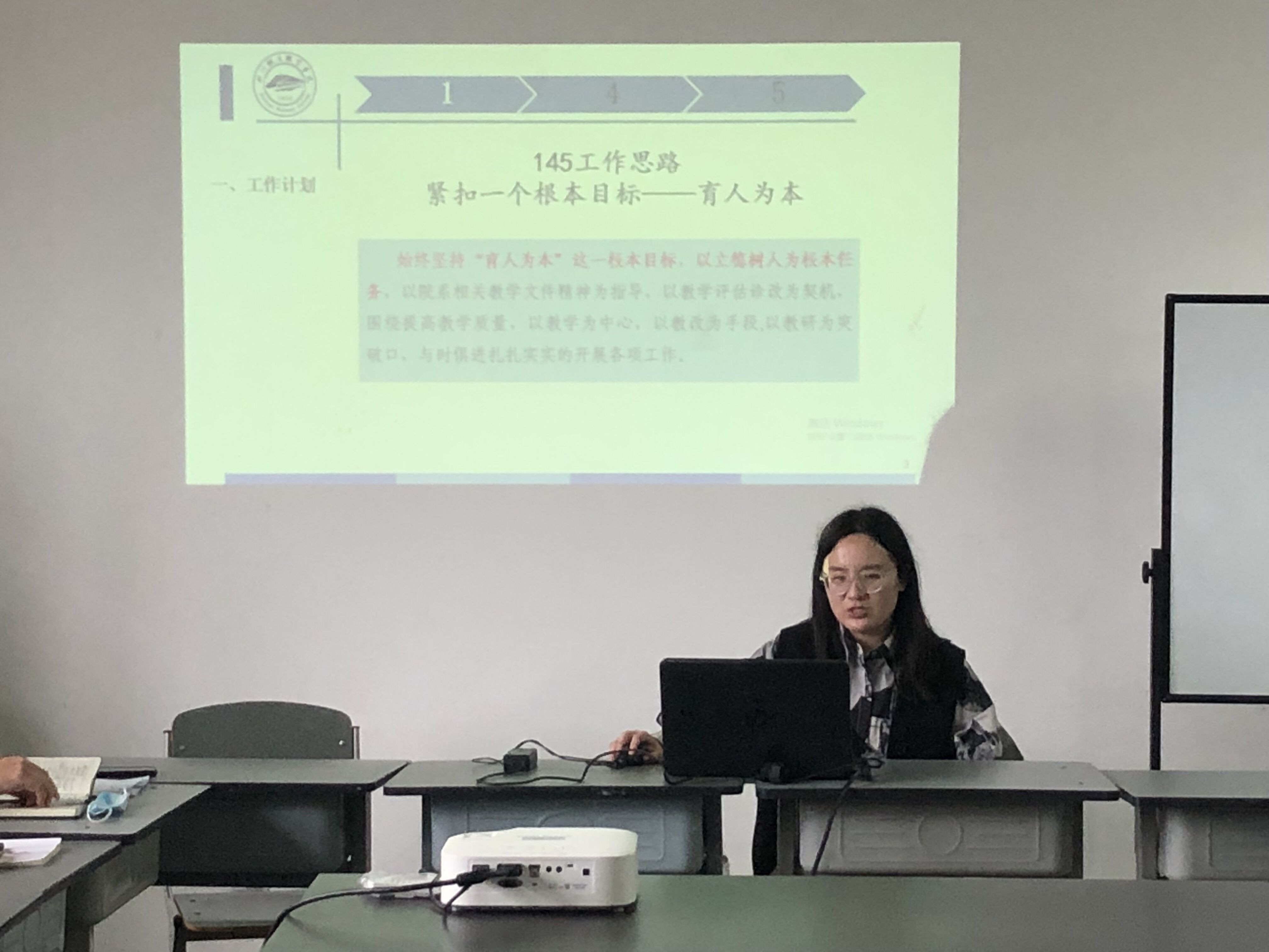 语文教研室教师李小菲汇报教研工作