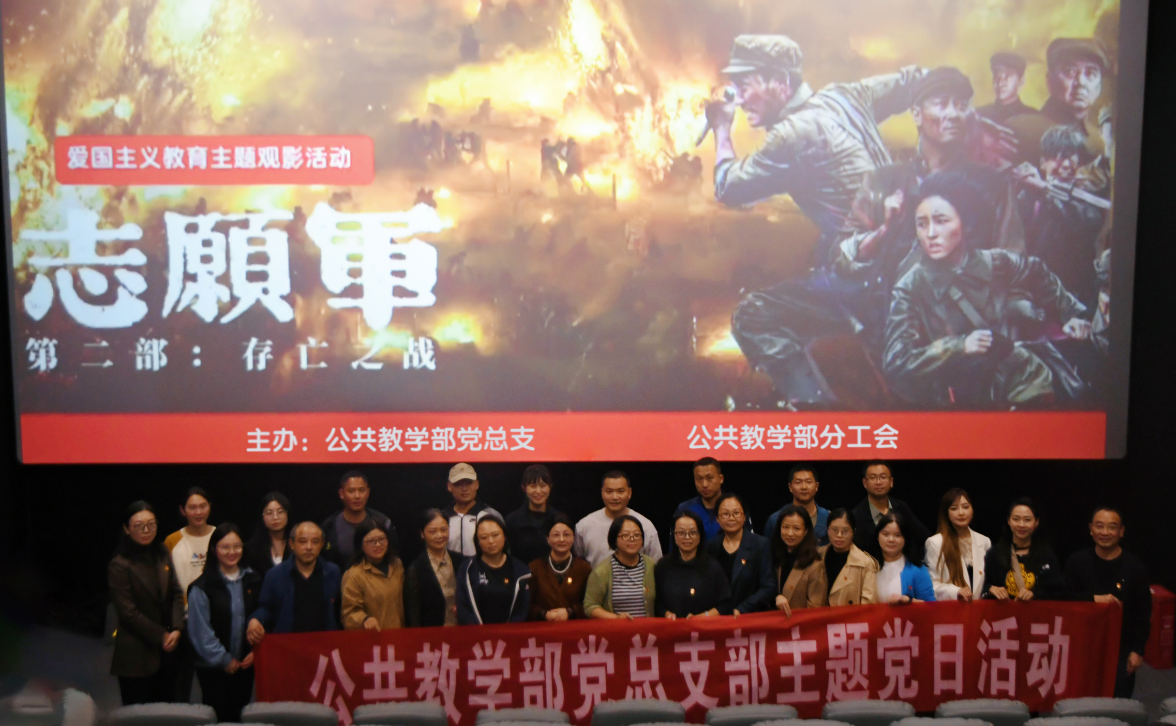 为进一步弘扬爱国主义精神与伟大抗美援朝精神,厚植党员教师的爱国主义情怀,10月28日下午,公共教学党总支组织全体党员教师集体观看爱国主义教育主题电影《志愿军:存亡之战》,开启了一场震撼心灵的红色之旅,共同追忆革命先烈浴血奋战的那段峥嵘岁月。