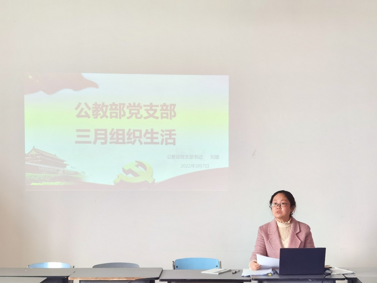 2022年3月7日下午,公教部党支部在2501教室开展三月组织生活会,会议由党支部书记刘媛主持。