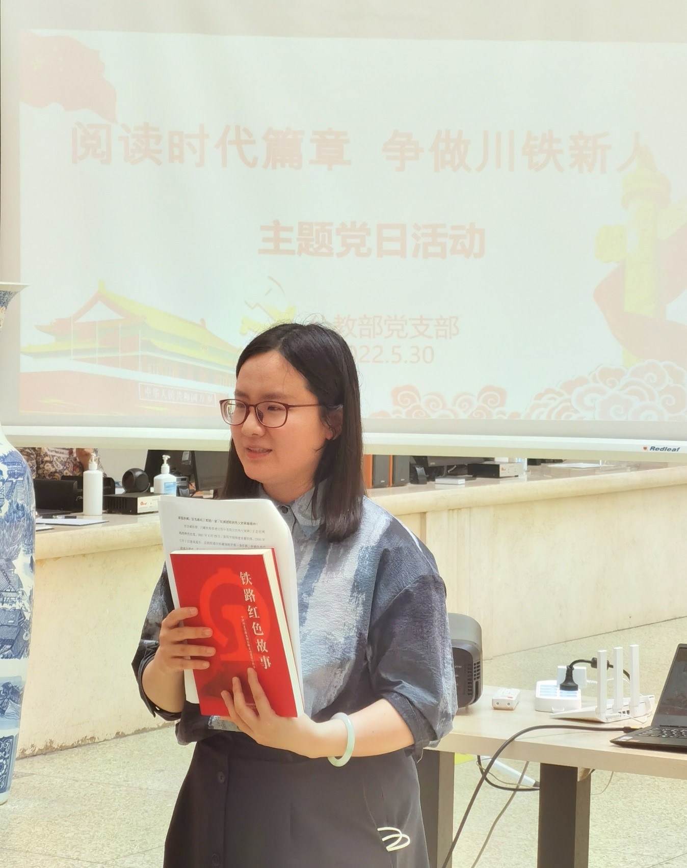 为落实学校“书香川铁 全民阅读”的文件精神,5月30日下午,公教部党支部在图书馆红色资源角开展“阅读时代篇章 争做川铁新人”主题党日活动。本次主题党日活动由公教部党支部书记刘媛主持,全体党员教师参加。