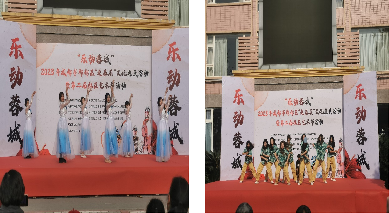 本次活动以传播川剧和非物质文化遗产刮大板为主题,旨在推进高雅艺术进乡村、进社区,进一步丰富百姓文化生活,引导居民感受传统文化的魅力,坚定文化自信。活动现场的文艺表演中,廖小凤老师带领学生展示的舞蹈节目《万江》《look at me》,表达了人们对美好生活的热爱和追求,赢得了观众的热烈掌声。他们用舞蹈点燃了人们的艺术热情,为郫都区文化艺术传播工作注入了新的活力。