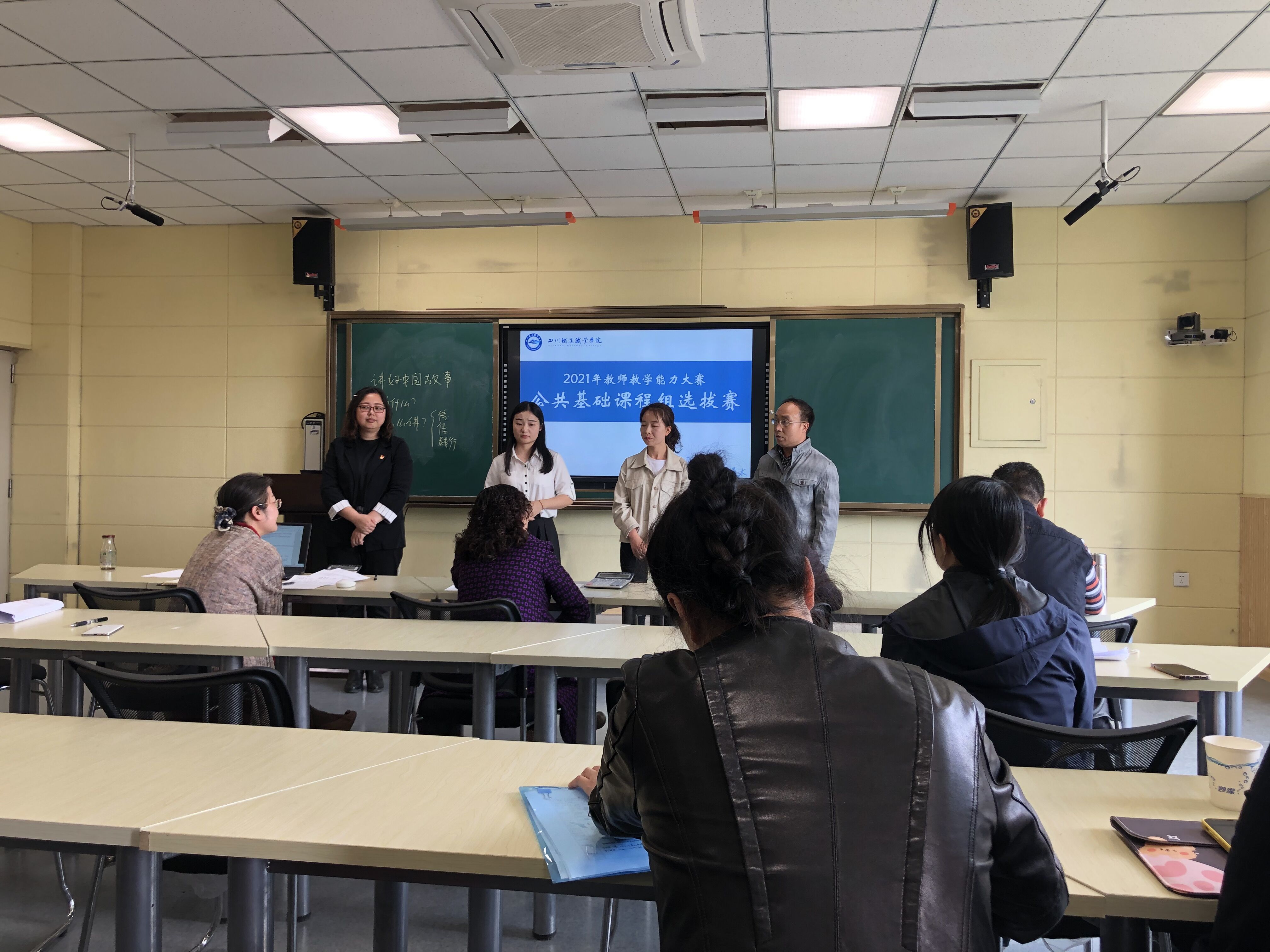 公共基础课程组选拔赛最终推荐《高等数学》课程团队、《国学概论》课程团队、《毛概》课程团队和《心理健康》课程团队四个教学团队参加院级选拔赛。