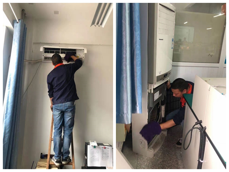 此次空调清洗维护工作是后勤国资处落实学校“我为师生办实事”行动之一,空调维护人员使用专用清洗设备和消毒剂,对室内空调滤网及出风口进行了全面清洗消毒,对制冷效果差的空调进行加氟等维护。