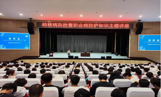 4月29日下午,后勤国资处邀请成都市郫都区疾病预防控制中心艾滋病与结核病防制科、卫生科的张婷婷和叶兴雨两位医生来pp电子开展结核病防控暨职业病防护知识主题讲座。讲座由后勤国资处副处长李昌涛主持。医务人员、辅导员、生活老师及各二级学院学生代表共600余人到场聆听。