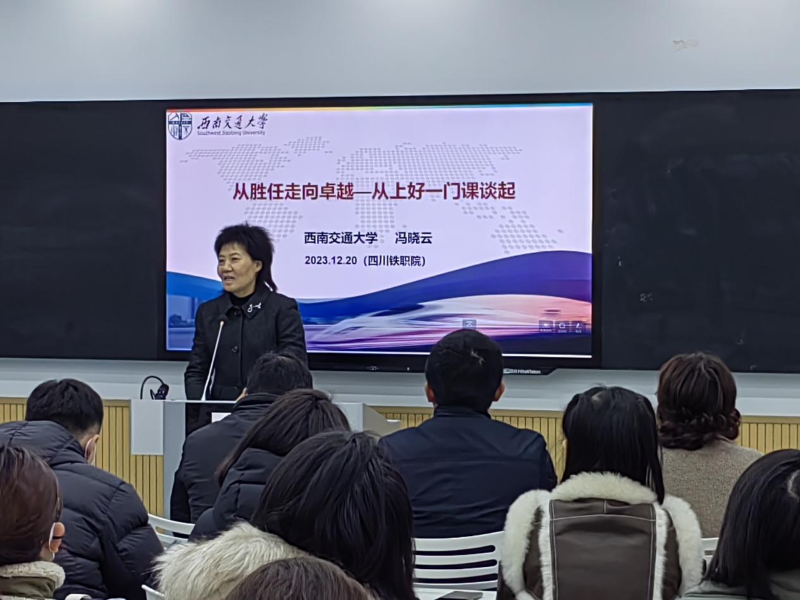 12月20日,由西南铁道职教联盟主办,pp电子游戏官网承办的第二十期“川铁大讲堂”隆重开讲。国家级教学名师、詹天佑铁道科学技术奖育人奖获得者、西南交通大学原副校长,博士生导师冯晓云教授应邀围绕高校教师、卓越教学、卓越课程教学案例、虚拟教研室建设等方面做“从胜任走向卓越——从上好一门课谈起”专题讲座。校长赖芳、副校长黄恩兴、机车车辆学院院长龙明贵以及学校教师代表参加了讲座。