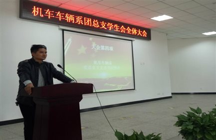 3月19日,机车车辆系团总支学生会在学术报告厅举行本学期第一次全体大会。党总支书记王文杰、学生支部组织委员余雅莉及团总支书记刘静雅老师出席此次大会。