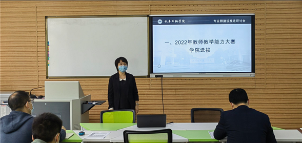 2022年4月7日下午,机车车辆学院在1211教室召开学院第二次专业群建设推进研讨会暨2022年四川省职业院校教师教学能力大赛学院选拔赛,会议由机车车辆学院龙明贵院长主持,铁道机车运用与维护、动车组检修技术和铁道车辆技术专业教研室主任和全体无课教师参会。