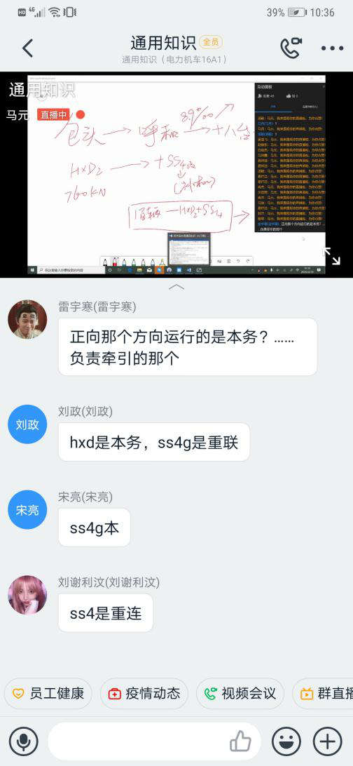 马元老师通过钉钉向机车16A1班级的学生进行《机车乘务员通用知识》授课。授课过程中,学生对马老师提出的问题积极讨论,课堂十分活跃。