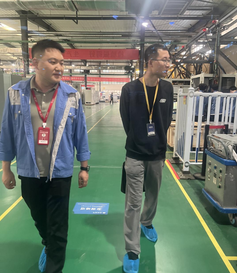 调研交流过程中,公司人事部经理夏涛亲自引导两位教师参观了公司的生产线,详细解读了企业的生产流程、技术研发、市场营销等多个环节,对工业电源的设计及制造领域进行了深入浅出的讲解。