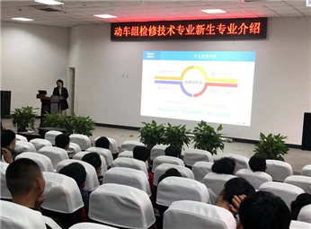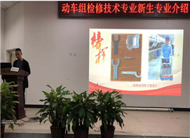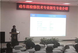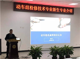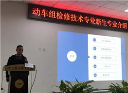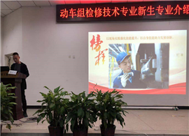 2020年11月16日下午机车车辆系动车组检修技术专业20级新生专业介绍讲座在学术报告厅展开,动车组检修技术专业20T1和20T2班级全部参加,动检教研室主任霍芳霄、专任教师孙小鹤、曹刚到场为学生进行专业介绍。与此同时,会议特邀成都动车段全国铁路青年岗位能手、全局技术能手、青年岗位能手同时也是全国尼红奖章获得者杨启义参加,并作主题演讲“高职生如何成为一名优秀的动车人”。