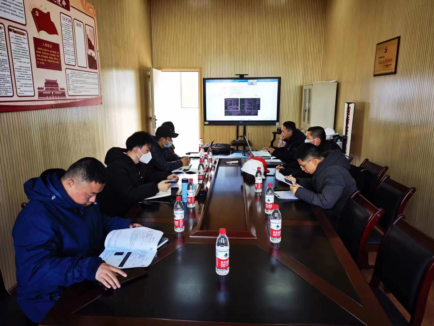 1月12日下午,基建处组织设计、施工、监理、过控、分包等单位开展了新建7、8号学生宿舍建设项目安装和建筑补充图纸会审。会上对图纸中不明确或不完善的地方进行了答疑补充,包括屋面女儿墙内侧装饰做法、屋面倒置防水做法、屋面设备机房外墙保温、雨棚顶面装饰做法,室内门窗装饰做法、卫生间淋浴花洒、线缆桥架大小规格、洗衣台、拖布池做法、地埋一体消防水池深化设计。会上还讨论了建筑、水、暖、电等其他有关问题,设计单位对相关问题进行了答复。图纸会审对后期施工技术问题解决、进度推进等起到了积极的推动作用。