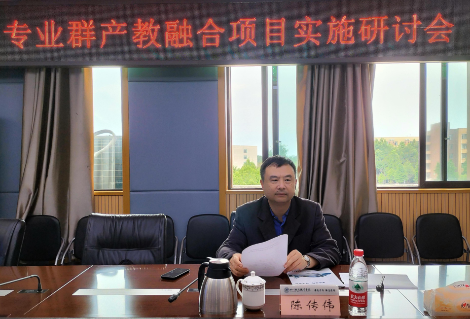 5月26日下午,pp电子游戏官网在第五会议室召开专业群产教融合项目实施研讨会,并邀请了成都工业学院副校长陈传伟为学校专业群产教融合项目实施策略做指导。教务处处长陈风玲和各二级学院负责人参加了会议,会议由教学副校长刘昊君主持。