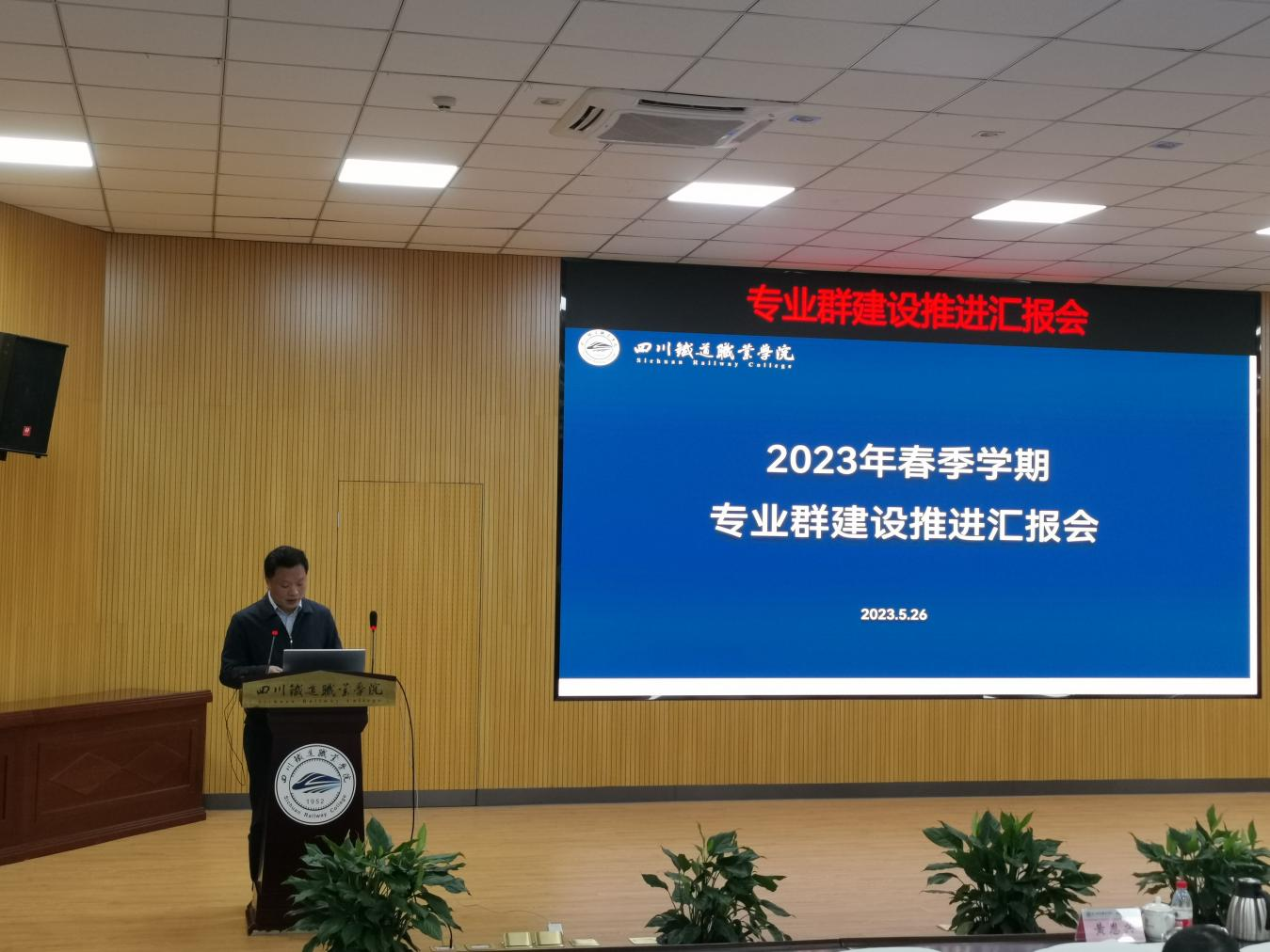 2023年5月26日,学校在学术报告厅组织召开2023年春季学期专业群建设推进汇报会,学校党委书记贺兆轩出席会议并讲话。纪委书记池秋平,副校长吴斌、黄恩兴,人事处、科研处、教务处负责人及相关工作科室负责人,二级学院书记、教学单位负责人、教研室主任及骨干教师参加会议。内江校区管委会相关领导和部分教师线上参会。副校长黄恩兴主持会议。