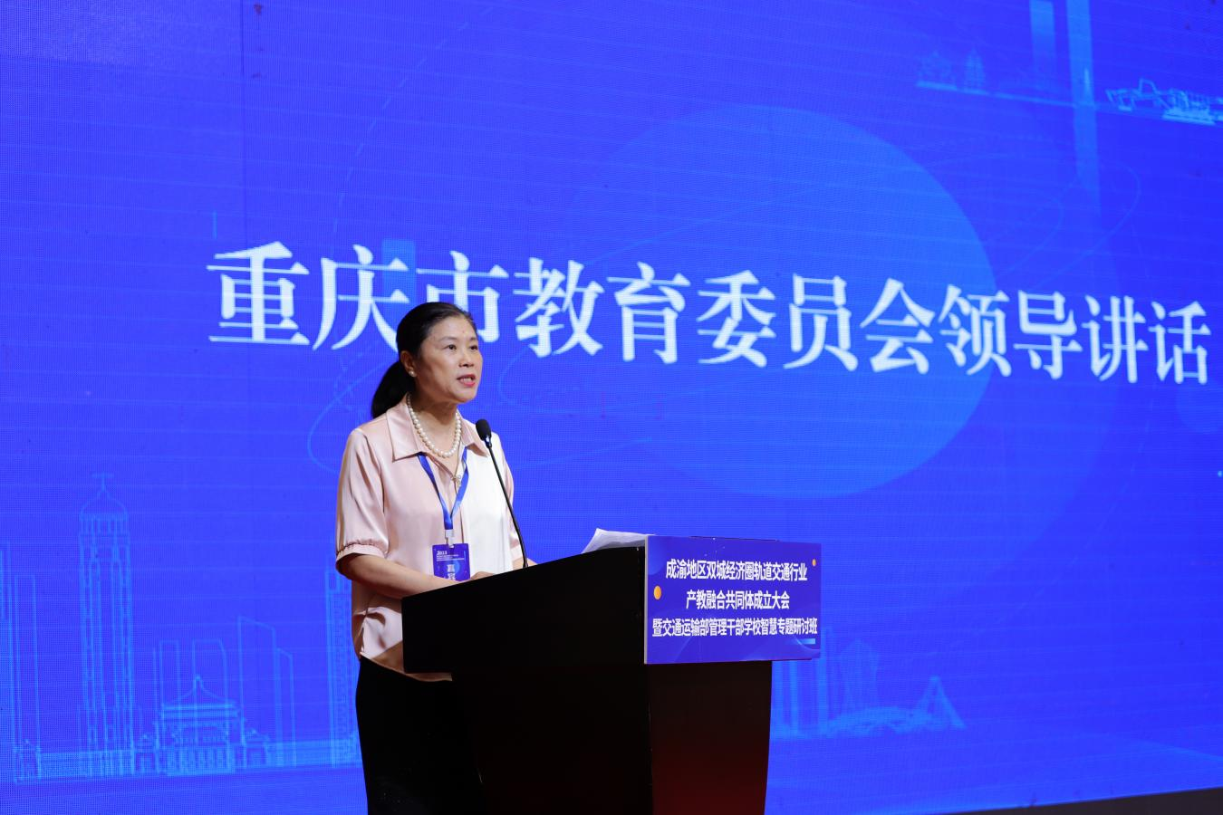 重庆市教育委员会二级巡视员范晓霞代表市教委对成渝地区双城经济圈轨道交通行业产教融合共同体的成立表示祝贺并对进一步做好共同体成立后的“下半篇文章”提出明确要求。她指出,要坚持共建共管、建立产教融合命运共同体,坚持互利共赢、建立产教融合新格局,坚持示范带动、建立产教融合新范式。