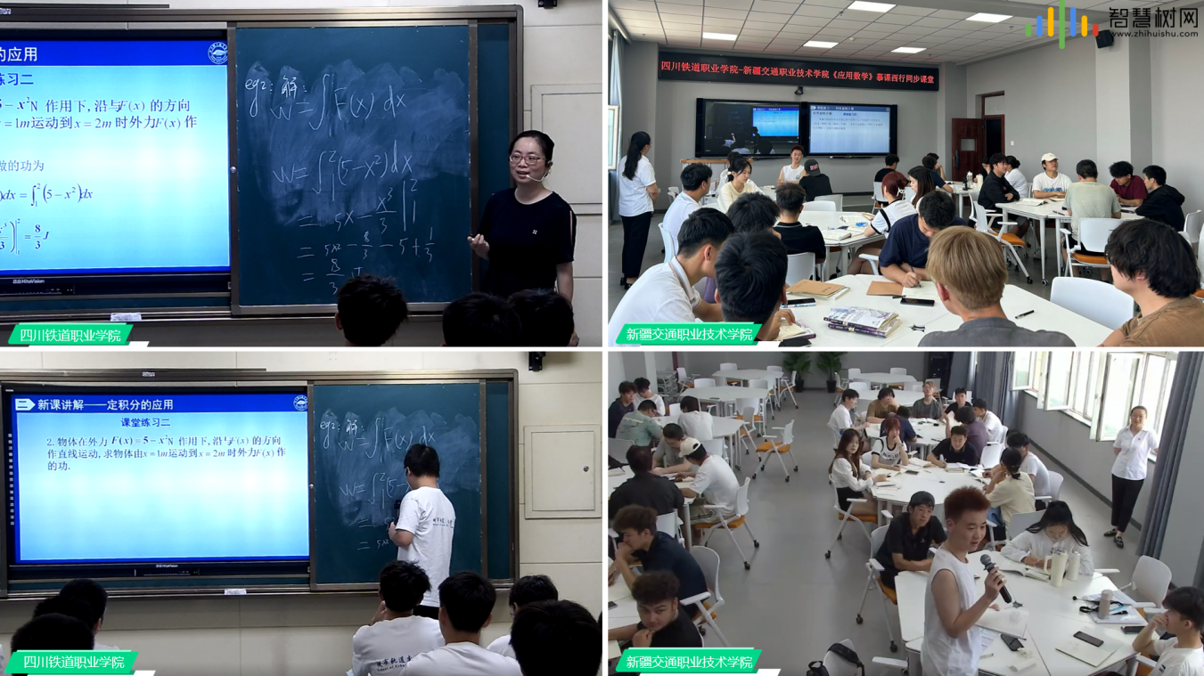 学生们在课堂上表现出极高的学习热情,他们积极踊跃地到黑板前做题板书,与尹老师进行互动。在课题练习环节,学生们在尹老师的指导下完成了设备折旧计算和列车能耗计算等实际问题的解答,进一步巩固了所学知识。此外,尹老师还布置了轨道振动分析和客流量统计等具有挑战性的作业题目,旨在培养学生们解决实际问题的能力。 新疆交通职业技术学院的郭婷老师在观摩了尹小辉老师的课程后给予了高度评价:“尹老师的课讲得太精彩了!她巧妙地将专业案例与课程内容相结合,同时将思政教育自然地融入课堂,每个方面都做得非常好。我们班的学生课后都表示非常喜欢尹老师的课。” 此次《高等数学》慕课西行云端课堂的成功举办,是学校教师风采的直观展示、也是基础课程教学改革的生动实践,为在线教学提供了一次借鉴的样板。推进基础课程与专业课程融合的教学改革,是一项“慢工出细活儿”的工作。把政策文件落实到实践探索中,把理念目标落实到课堂教学中,一以贯之,久久为功,学校必将培养出更多具备扎实专业知识和良好职业素养的优秀人才。 撰稿:尹小辉 审稿:霍芳霄