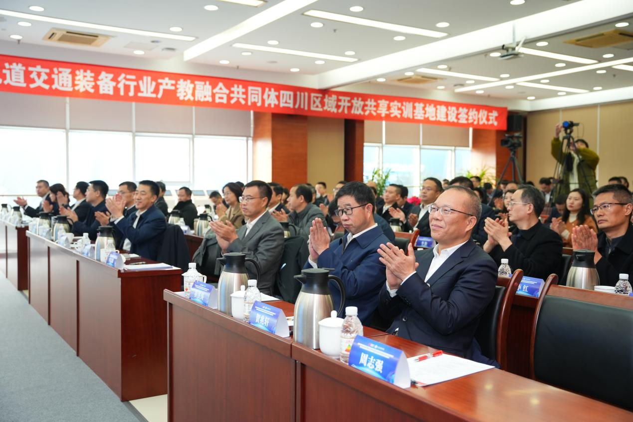 为深入贯彻落实习近平总书记对教育工作和产教融合工作作出的重要指示精神,努力打造具有轨道交通装备行业产教融合共同体标杆示范,为轨道交通装备行业加快发展新质生产力夯实人才根基,12 月 26 日,国家轨道交通装备行业产教融合共同体四川区域开放共享实训基地建设签约仪式暨四川省轨道交通装备智能制造与智慧运维产教融合改革试点项目启动仪式在眉山举行。中国中车集团有限公司、四川省教育厅、眉山市人民政府以及国家轨道交通装备行业产教融合共同体主要成员西南交通大学、pp电子游戏官网等单位领导出席活动。本次活动旨在共同探讨轨道交通装备行业发展新路径,推动职业教育与轨道交通装备行业深度融合,促进我国轨道交通装备行业高质量发展。