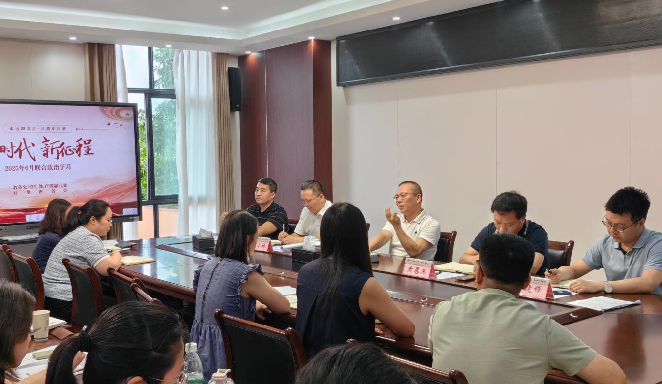 2025年6月23日15:00,教务处/招生处/产教融合处与计划财务处联合开展6月政治学习,深入学习贯彻中央关于教育强国建设、民生保障及安全生产的重要决策部署。党委书记贺兆轩,党委委员、副校长黄恩兴出席指导。