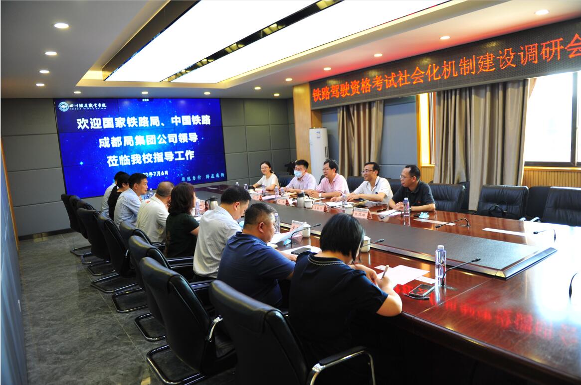 7月6日下午,国家铁路局铁路机车车辆驾驶人员资格考试中心祝曦处长、中国铁路成都局集团公司职工培训部张琪琳主任一行五人到pp电子开展了驾驶资格考试社会化机制建设工作调研。