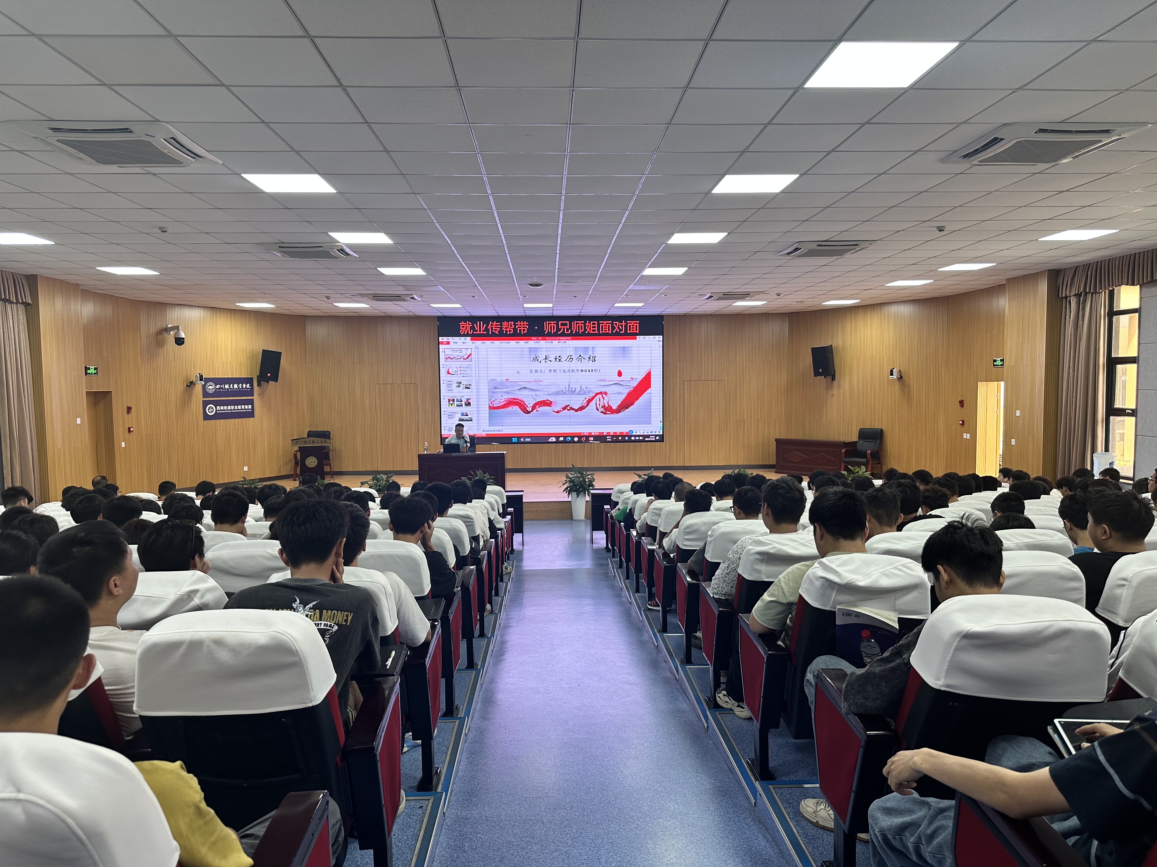 为更好帮助毕业生了解就业形势、引导毕业生树立正确的就业观、择业观,人生观。5月22日,就业处联合校团委在学术报告厅开展“就业传帮带·师兄师姐面对面”主题团日活动。活动邀请了2008届铁道机车车辆专业优秀毕业生李明担任主讲嘉宾,轨道交通15个专业260余名师生代表参加了活动。