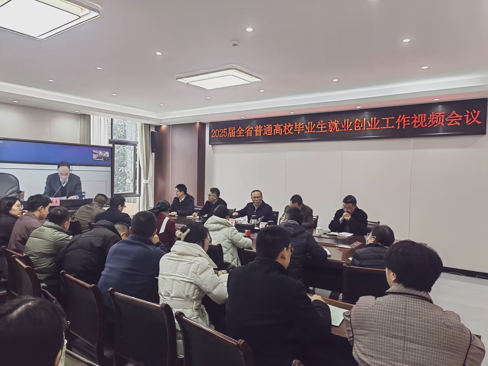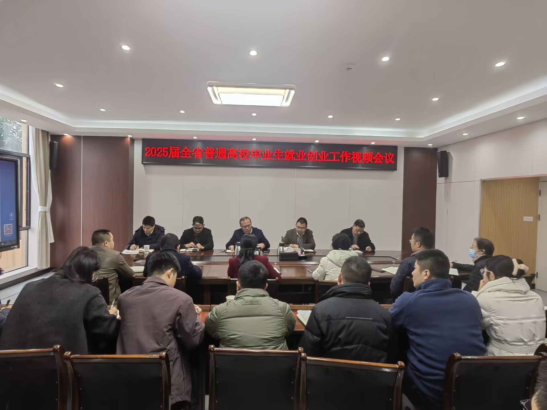 12月6日下午,教育厅、人力资源社会保障厅联合召开2025 届全省普通高校毕业生就业创业工作视频会议,深入学习贯彻党的二十届三中全会和全国、全省教育大会精神,认真落实 2025 届全国普通高校毕业生就业创业工作会议部署,全面总结 2024 届全省高校毕业生就业工作,深入分析研判当前高校毕业生就业形势,对2025届全省高校毕业生就业创业工作进行部署。pp电子在第三会议室设分会场,党委书记贺兆轩,副校长代学灵出席,各二级学院党政负责人、毕业班全体辅导员、就业辅导员,就业处全体工作人员参加本次会议。