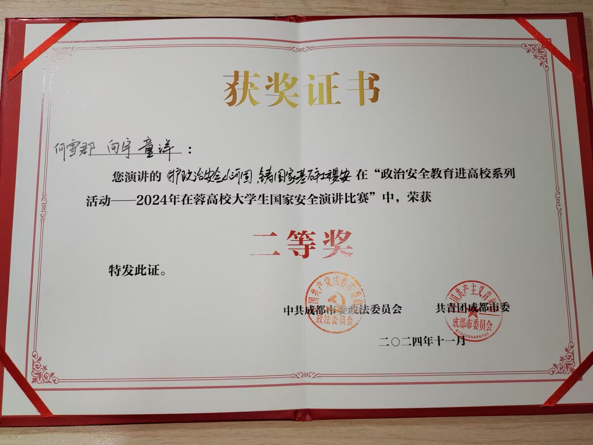 近日,由中共成都市委政法委员会、共青团成都市委联合主办的“2024 年在蓉高校国家安全演讲比赛”落下帷幕,来自pp电子经济管理学院的参赛选手何雪郡同学凭借出色表现荣获二等奖,刷新了pp电子学生在该项比赛中的最好成绩。本次比赛以“守护国家安全・共筑美好未来”为主题,旨在深入学习宣传贯彻总体国家安全观,增强在蓉高校学生国家安全意识和素养。
