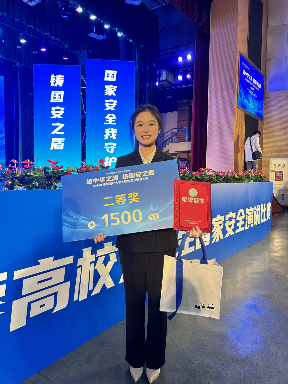 据悉,该赛事于2024年10月10日启动,学校团委高度重视、积极宣传、严密组织,推选了何雪郡、黄龙禹等两个团队代表学校参加市级比赛。在决赛中,何雪郡同学结合个人学习生活实际和对国家安全有关问题的思考,以“护政治安全山河固,铸国家基石社稷安”为题进行了精彩演讲,充分展现了新时代青年胸怀国之大者、勇担时代责任,自觉维护国家安全的使命担当,赢得了现场观众和评委的一致好评。