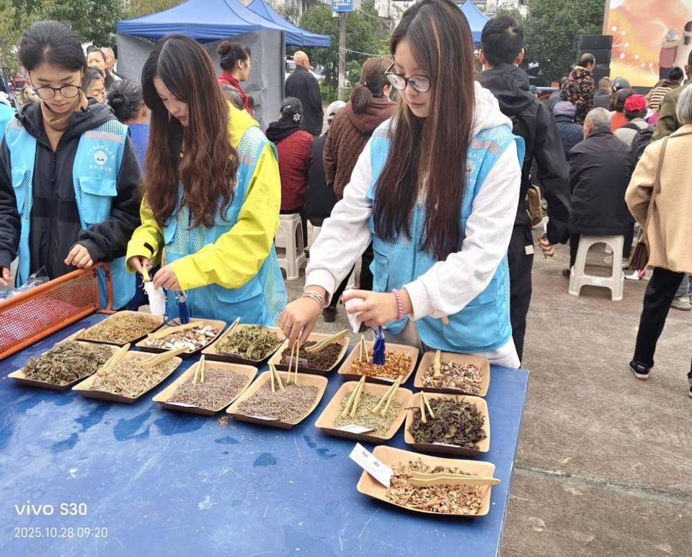 在传统中药香囊制作环节,志愿者们手把手指导老人选药、填料、封口与装饰,细致讲解每种药材的功效与文化内涵。老人们专注地挑选心仪的草药,亲手制作出一个个清香四溢的香囊。小小的香囊,不仅凝聚着志愿者的真诚心意,更寄托着对老人们健康长寿的美好祝愿。活动现场弥漫着草药的清香与温馨的氛围,老人们在动手体验中感受到传统文化的魅力,也收获了陪伴的暖意。