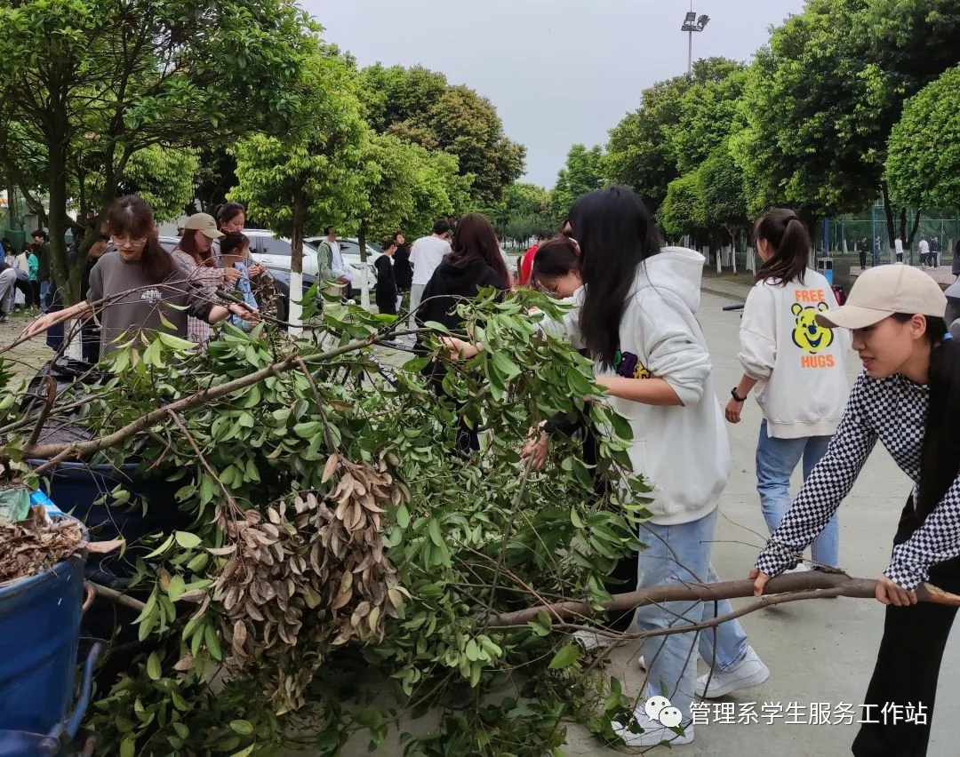为了促进学生树立正确的劳动观和劳动态度,提高将来服务社会的意识,2021年4月13日至15日,管理系大动员每个班参加了劳动教育。我系每天都有四个不同的班级在学校大门旁指定区域积极劳动,辅导员唐准老师每天下午7、8节课准时到场组织各班集合点名、分发劳动工具及劳动安全教育,叮嘱各班注意劳动纪律,各班的班主任也到场与同学们一起协作。