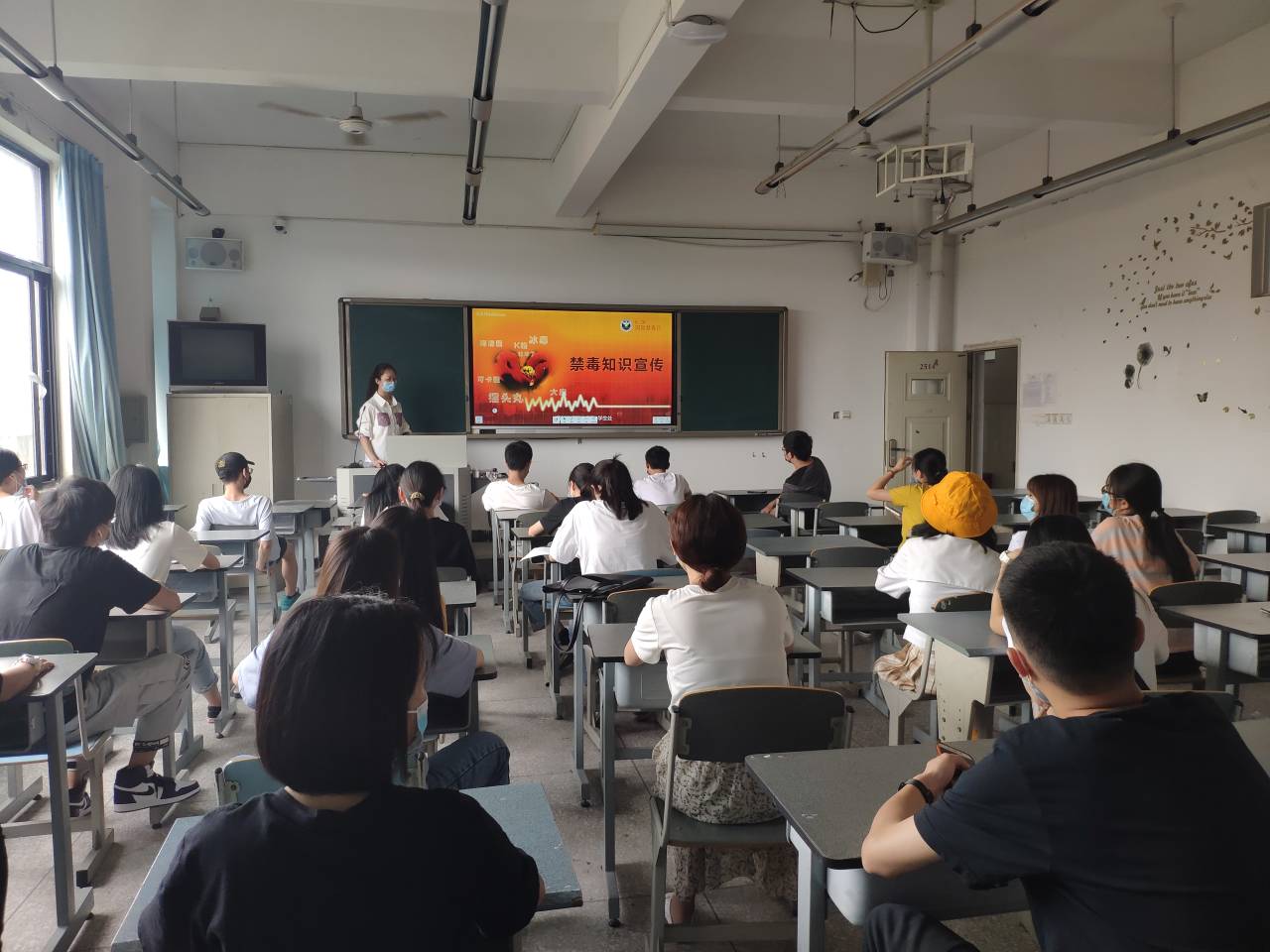 我系要求各班级通过线上或者线下班会课,班主任老师根据学校禁毒工作计划要求、毒品宣讲PPT相关内容以及校级培训所学习的相关知识,从毒品种类和吸毒危害方面加强对学生的禁毒知识宣传教育,让学生们认识什么是毒品,毒品的分类、吸食毒品会出现什么症状,了解吸食毒品的危害,使学生从中深深地感受到毒品的可怕。组织学生学习了相关的法律法规,使学生认识到吸毒和贩毒都属于违法犯罪活动,都会受到法律的严惩,增强学生拒毒、防毒、守法的意识,提高自觉抵制毒品的能力,自觉做到“不吸毒、不贩毒、不种毒”。各班级都进行了细致、认真的讲解,同学们都受到了较深的教育。