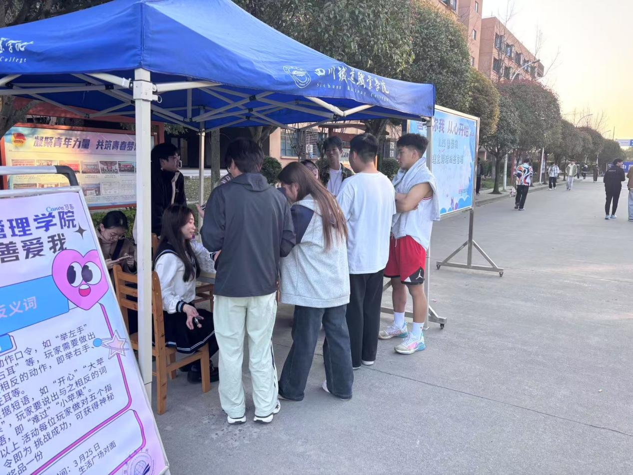 为进一步加强心理健康教育,引导同学们悦纳自我、热爱生活,3月25日,经济管理学院学生会在5号公寓外组织开展了“3·25 善爱你我,从‘心’开始”心理健康教育宣传活动。活动吸引了在校师生的广泛参与,营造了温馨和谐的校园环境。