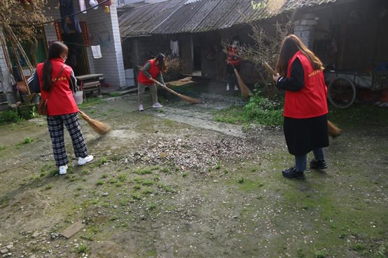 帮助独居老人清扫庭院