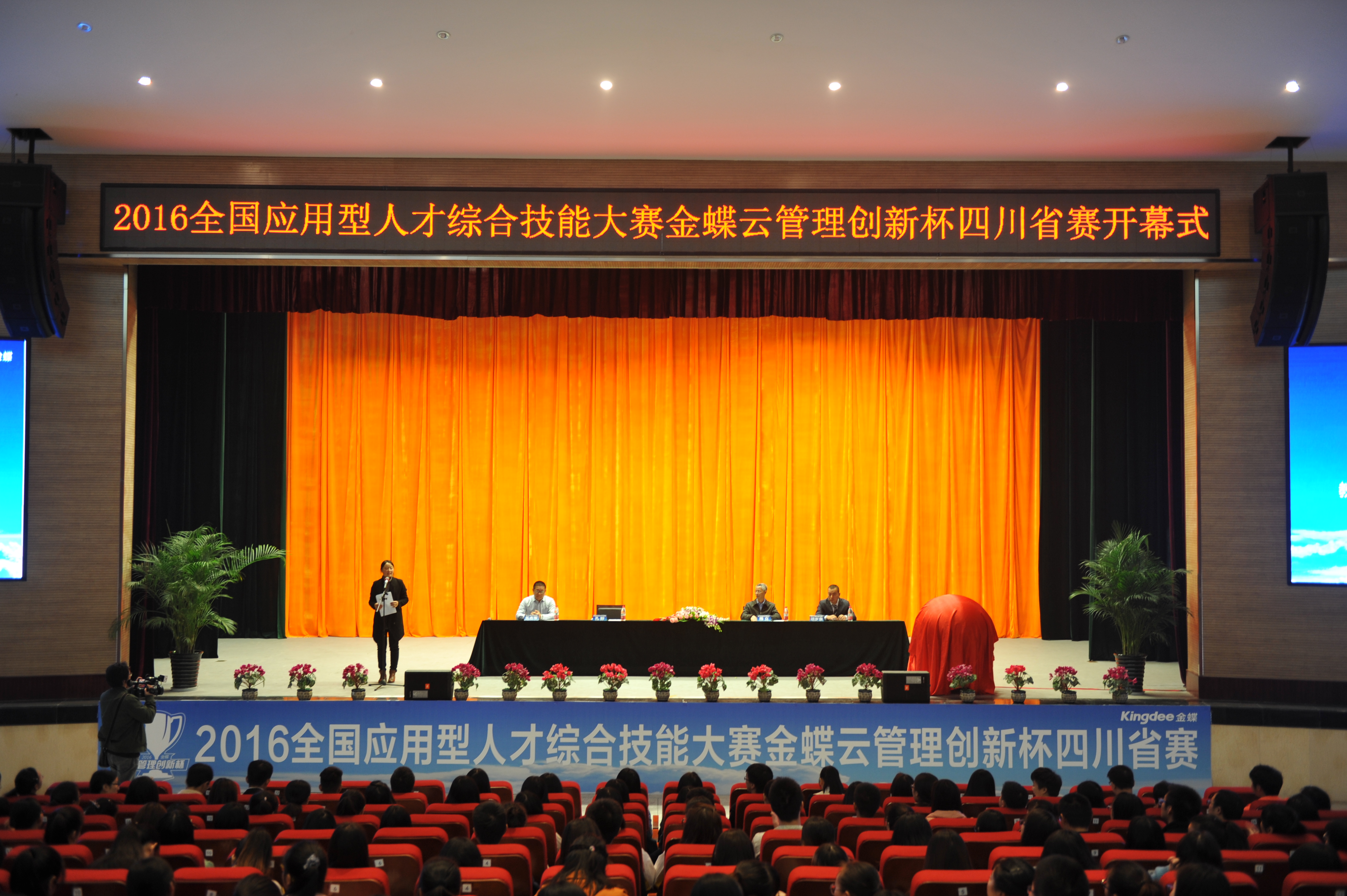学院院长周立、教育部高校毕业生就业协会校企合作委员会主任助理孔盼、金蝶精一信息科技服务有限公司执行副总裁乐志军、金蝶软件(中国)有限公司成都分公司总经理项岁泉出席开幕式。