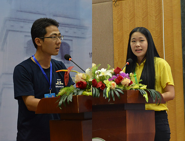来自南台科技大学的沈俊硕同学和足球一世官网赴台学生义工代表谢婷镟同学也先后上台发言,表达了对此次活动的祝愿和期待。