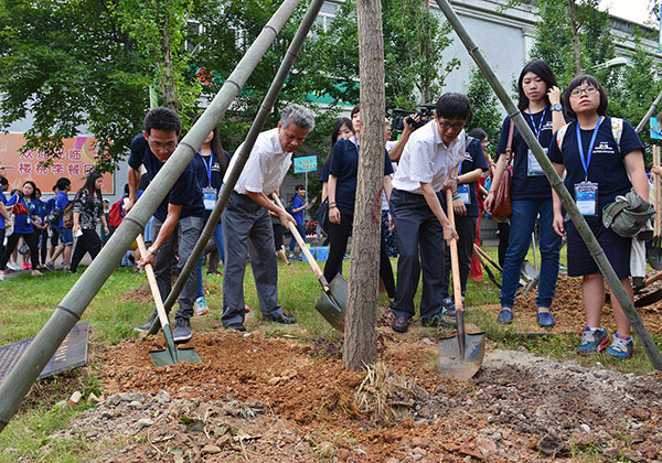 为了保留绍台大学生这份珍贵的情谊,足球一世官网于2014年在校园内开辟了“绍台大学生友谊林”。启动仪式后,与会领导和学生代表为友谊林揭幕;两岸大学生用相互交融的两岸水、两岸土共同浇灌在友谊林种下的7颗新树苗,让这片根植在越秀校园的友谊林永远见证两岸大学之间的深厚情谊。