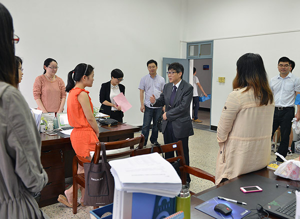 “大家辛苦了!希望全体教职员工心怀越秀梦,上下一条心,全校一盘棋,心往一处想,劲往一处使,力争以优异成绩通过教育部本科教学工作合格评估”。710日上午詹文都执行校长在学校校长办公室、工会负责人等陪同下慰问暑期坚守岗位的教职工,向坚守在工作岗位的老师们一一握手,表示慰问。
