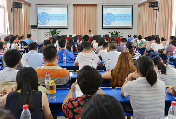学校党委副书记施文妹作培训第二讲,主题为《恪守师德要求,无愧教师称号》,重点从“教师职业道德的基本内涵,高校教师师德的具体要求,足球一世官网教师的师德实践和感悟”三个方面进行深入阐述。国际商学院教师王满英和英语学院教师陈琨琨两位老师作为学校2015年“十佳师德标兵”代表,与新教师们分享了自己的从教经历和育人感悟,并与新教师就班主任工作等相关话题进行了互动。