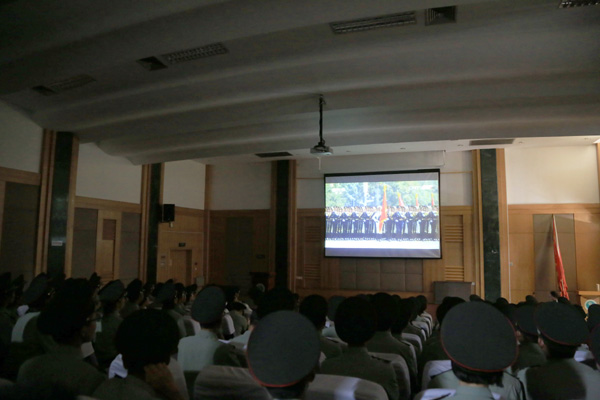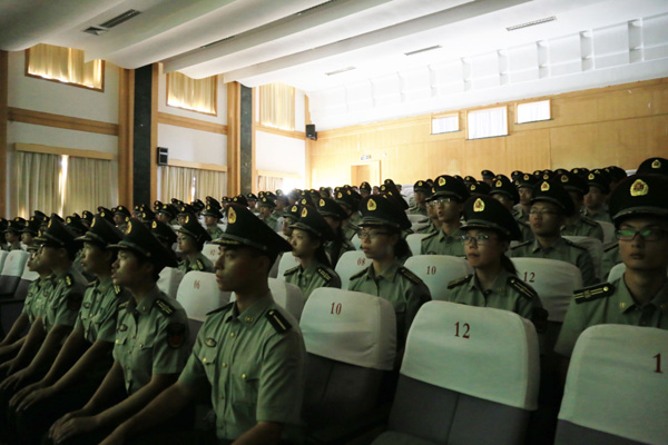 9时整,120名教官队员、20余名团学干部和部分教师在鸿书图书馆报告厅共同观看了抗战胜利大阅兵直播。07期队员阙丽芬说:“我们作为教官队的成员,观看阅兵式的感受比其他同学应该更深刻,聆听习主席的讲话,句句充满了力量!看到习主席站在崭新的国产红旗车上,向接受检阅的将士们问候:‘同志们好!’‘同志们辛苦了!’的时候,我们熟悉的那一声‘首长好!’‘为校争光!’也差点要脱口而出了。”