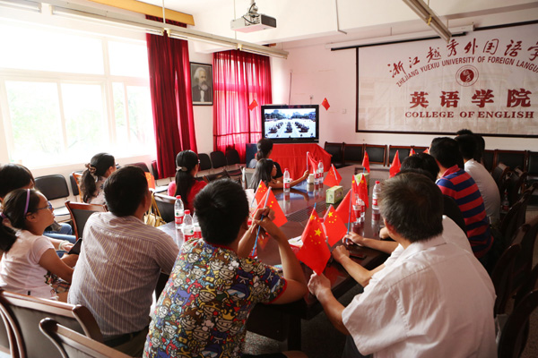 虽然属于节假日,但英语学院20余名老师主动放弃休息时间,投入在紧张而忙碌的开学准备工作中。上午,大家专门抽出时间聚集在学院“党员之家”观看大阅兵直播盛况。周雪琴是英语学院一名有着29年党龄的党员教师,在观看阅兵直播的过程中,她显得特别激动。“祖国的强大、振撼的大阅兵让我激动,和平来之不易,需要我们一代一代人的不懈努力。老兵们饱经沧桑的脸,告诉我们维护和平的接力捧该由我们来接了,作为一个中国人,当义不容辞。人民必胜,祖国万岁!”
