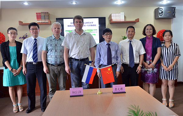 95上午,执行校长詹文都在稽山校区会见莫斯科市立师范大学副校长格林史昆·瓦季姆、中俄合作中心主任耿华一行,就校际间的学生交流和留学生工作交换意见。